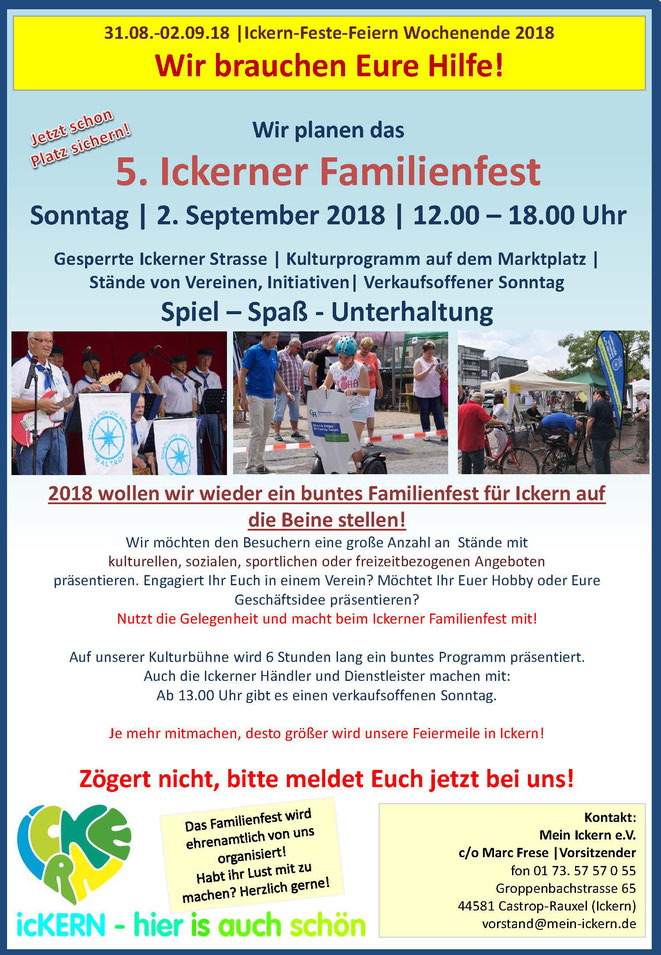 Am 05.09.2018 stellt Rescue-Kompass sich auf dem 5. Ickerner Familienfest dem Castroper Bürger vor.